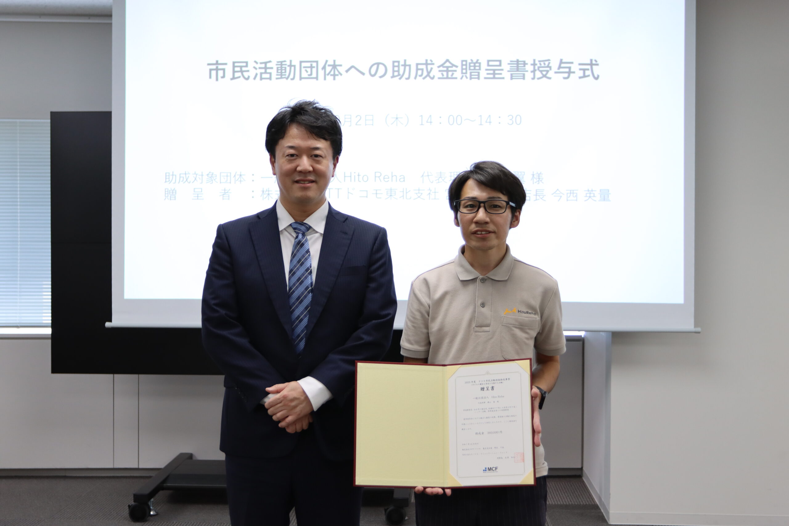写真左:株式会社ドコモCS東北宮城支店 支店長 今西 英量 様写真右:一般社団法人Hito Reha 代表理事 横山 翼 2025年10月2日に2025年度ドコモ市民活動団体助成事業の贈呈式が行われました。今西様より贈呈 […]