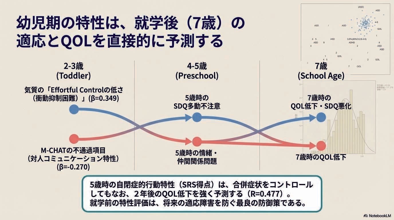 仮にASDの特性が見え隠れしつつ、「併存疾患」を見落とすと、就学後に子どものQOLに影響を及ぼす。