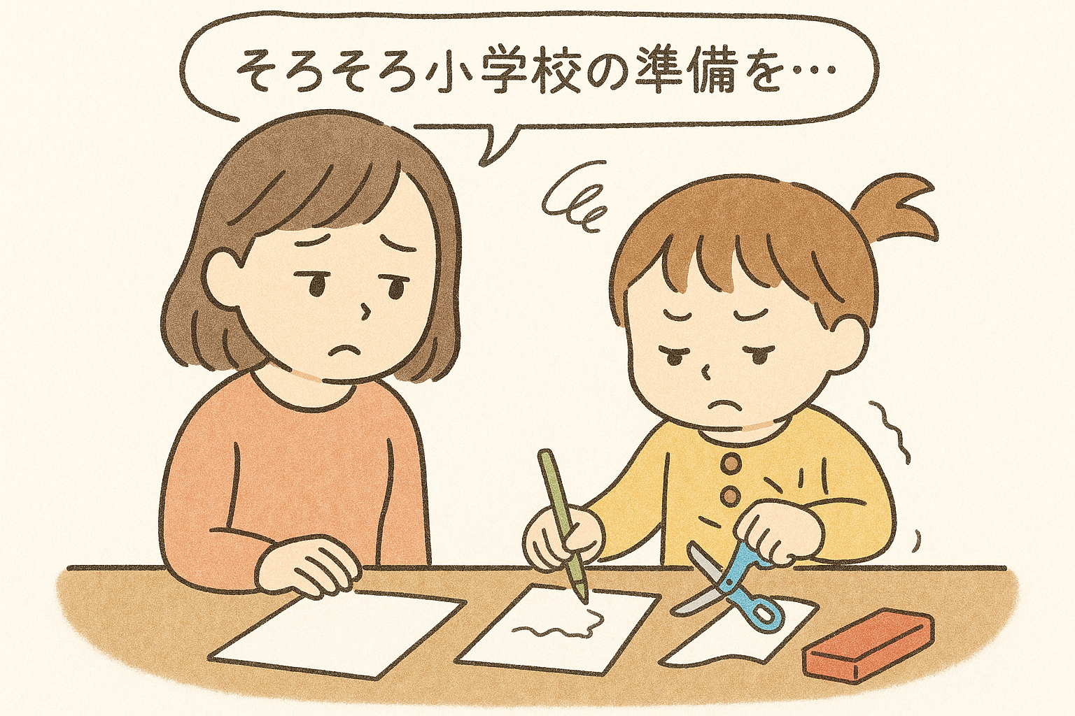 「そろそろ小学校の準備を…」と、鉛筆やハサミを持たせてみたものの、